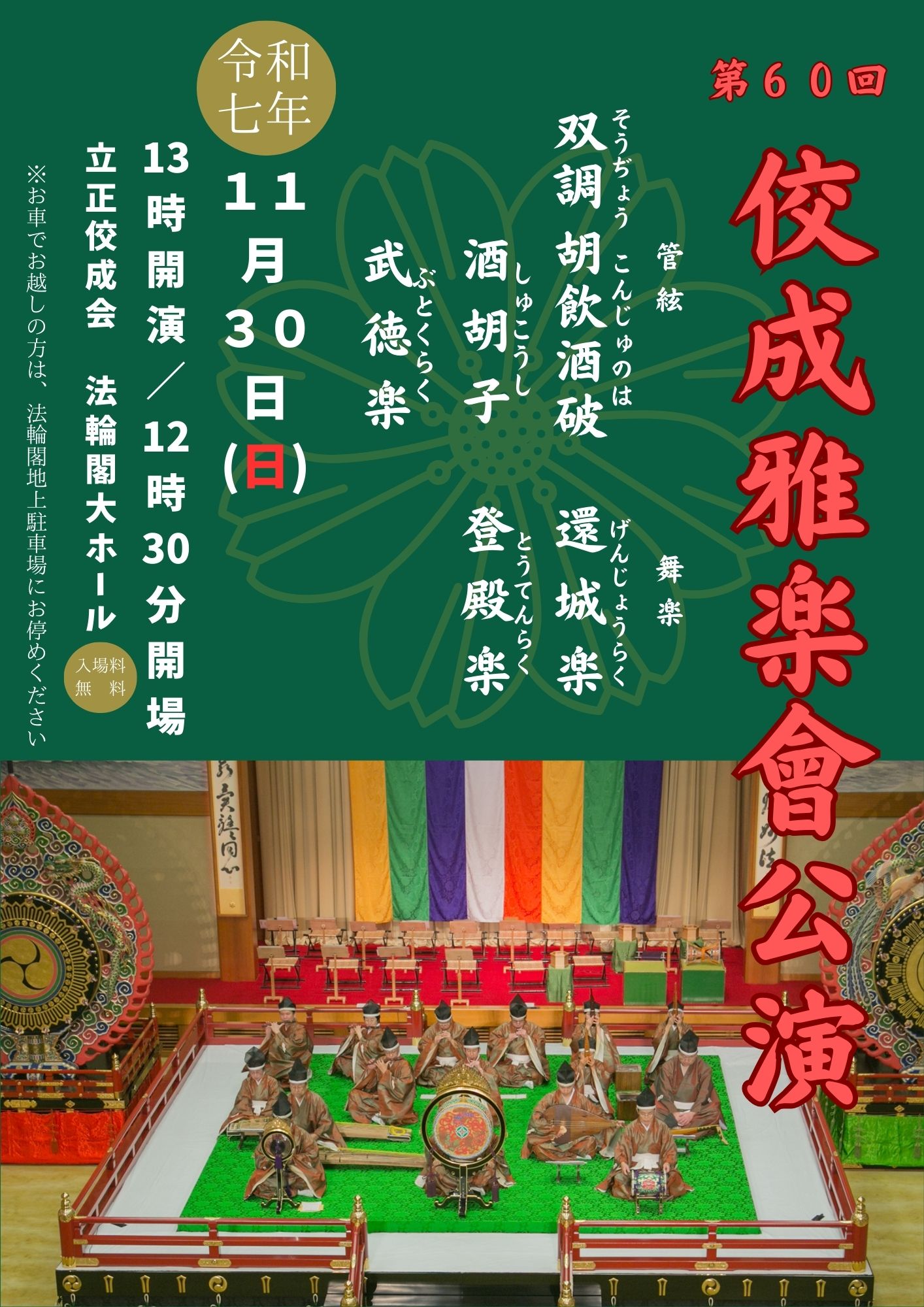 11月30日(日)第60回佼成雅楽会定期公演のお知らせ 2025.11.07 第60回 佼成雅楽会公演を下記の通り開催いたします。 チラシも完成いたしましたので、是非ご一読いただければ幸いです。 お誘い合わせの上、皆さまのお越しを心よりお待ちしております。